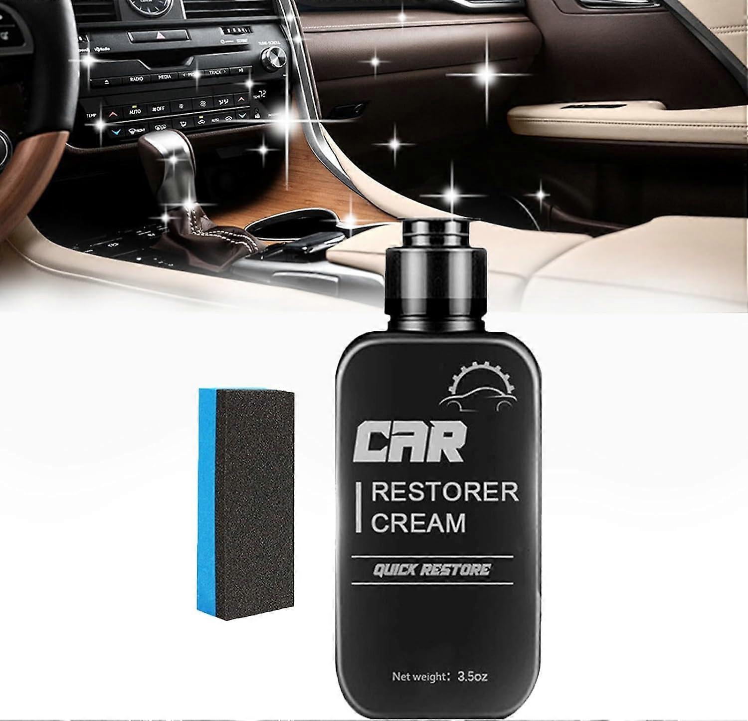 Car Interior Polishing Agent, 2024 New Car Restorer Cream, Plastic Renovation for Cars, Car Plastic Cleaner Restorer with Sponge