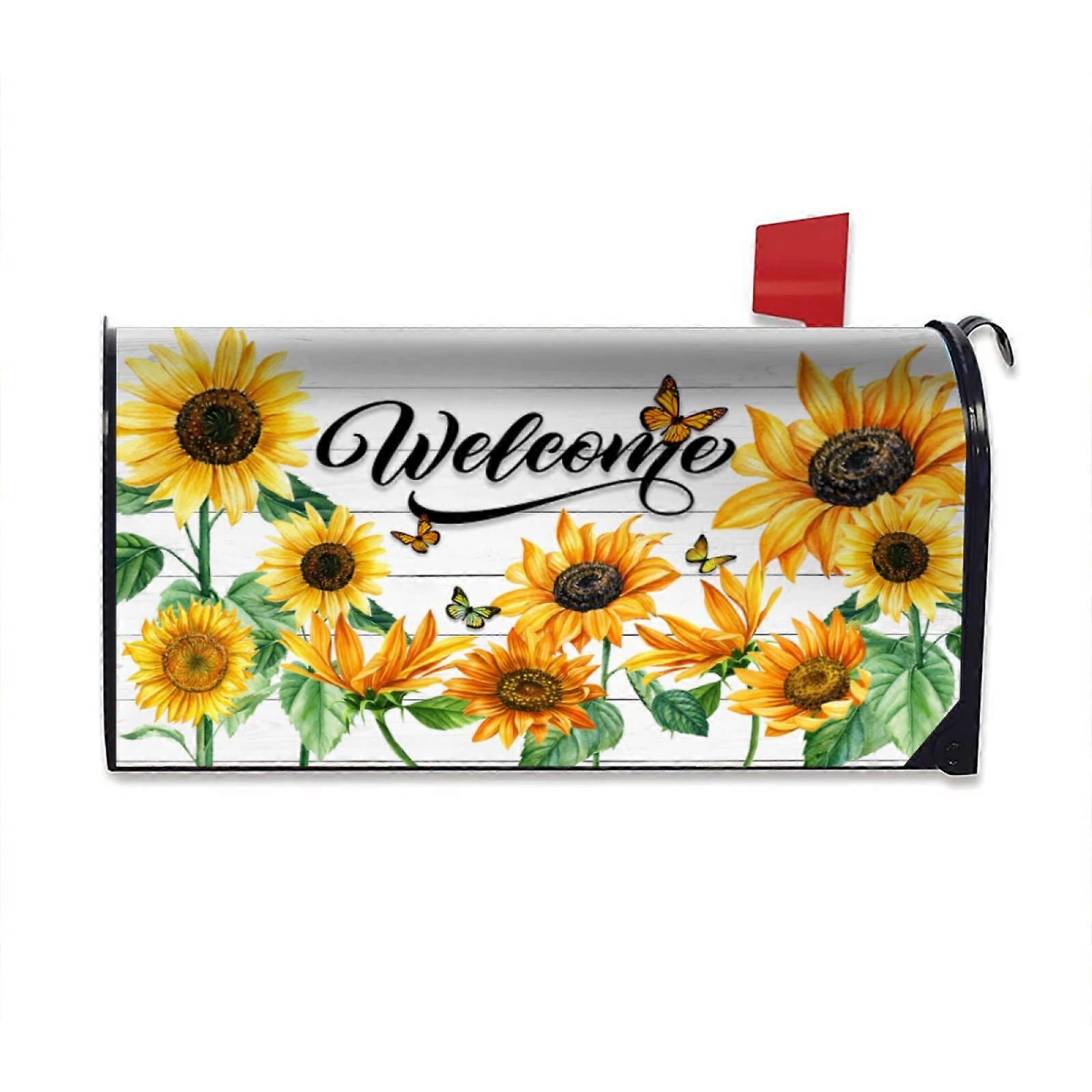 Sunflowers Welcome Mailbox Cover 18x21 Inch Vintage Floral Magnetic Design for Home Garden Yard Decoration
