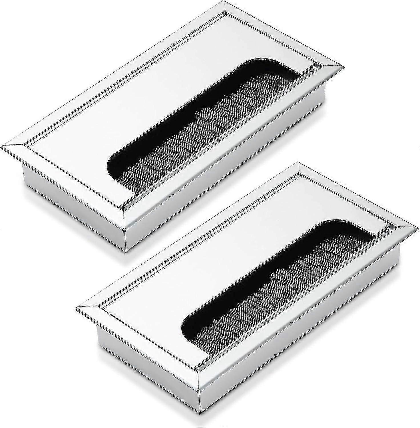Pack of 2 Aluminium Cable Grommet, 160 x 80 mm Desk Cable Grommet for Office Computer Desk Wires