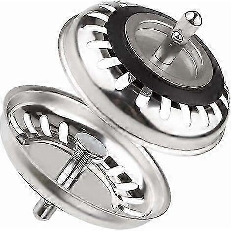 Pack of 2 Stainless Steel Kitchen Sink Plug, Universal Kitchen Sink Filter 79.3 mm, Stainless Steel Anti-Lock Sink Drain Plug, for Kitchen and Bathroo