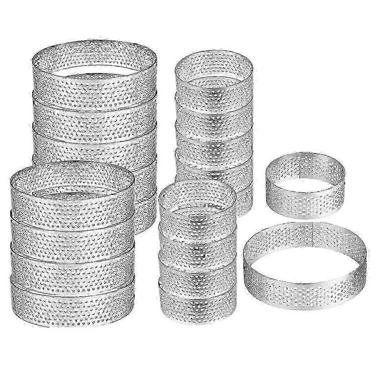 20 Pack Perforated Tart Rings, Nonstick Round Cake Ring, Round Mousse Cake Ring Stainless Steel, Baking Dessert Ring
