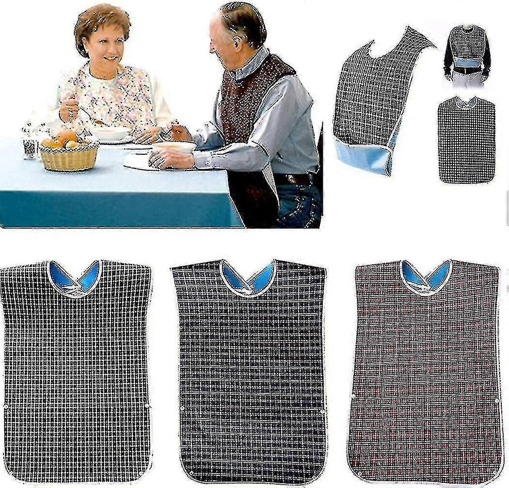3 Pack Adult Bibs With Crumb Catcher - Washable Adult Dining Bib, Lar Adult