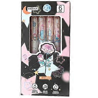 Pack of 6 Retractable Gel Pen 0.5MM Tip Quick Drying Smooth Writing Experience for Student Adult Noting Journaling