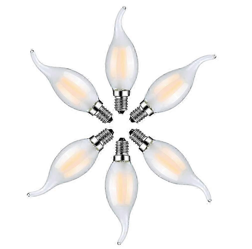 Pack of 6 LED Flame Bulb E14 4W Warm White 2700K - Filament Candle Bulbs for Chandeliers - Frosted Glass