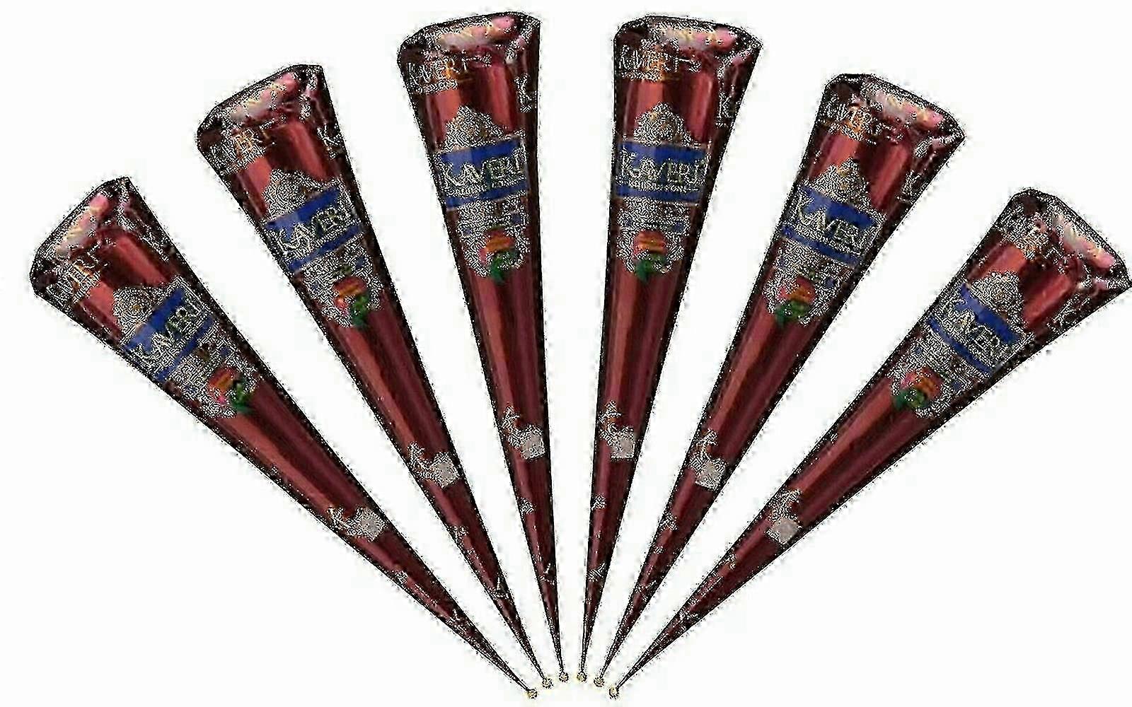 Pack of 6 Fresh Quality Dark Brown Natural Henna Mehndi Cones Temperory Tattoos