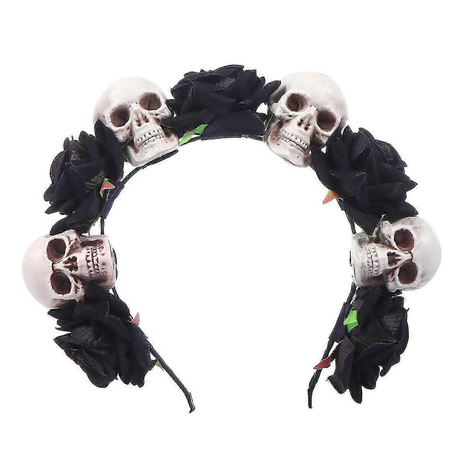 Vintage Black Red Rose Skull Headband for Girls Ghost Party Prop
