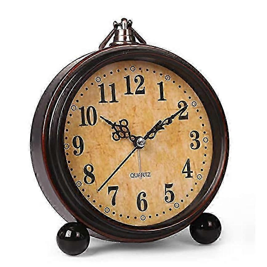Vintage Hangable Battery Alarm Clock Metal Night Light Super Silent Table Desk Quartz Clock Time-Good