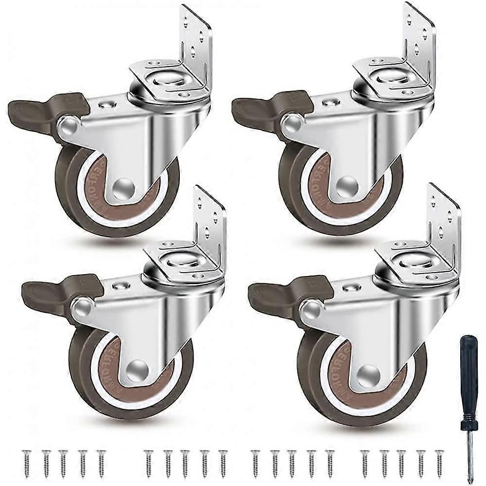 Heavy-duty Furniture Castors With Brake, Set Of 4 Castors, Rubber, Small, 50 Mm, L-shaped Heavy-duty Castors, 108 Kg, Silent Transport Castors With 20