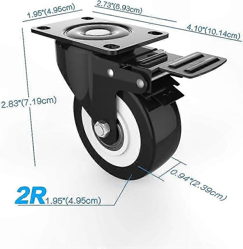 Heavy-Duty Flat-Bottom Swivel Casters: These wheels rotate 360 degrees, allowing for flexible, smooth, quiet, and precise directional changes. When braking, the mounting plate and wheel lock simultaneously for enhanced stability. Heavy-Duty Design: The flat-bottom brake casters are constructed from high-strength steel. Polyurethane tread offers the resilience of rubber with the durability of metal. This rigid construction provides excellent strength and longevity. Each caster supports up to 40 kg, with a total load capacity of 160 kg per set. Suitable for: Ideal for various indoor and industrial applications including homes, schools, garages, workshops, carts, and medical facilities. Can be used on a wide range of furniture and mobile equipment. The wheels are resistant to stains and corrosion. Compatible with multiple floor types such as carpet, laminate, parquet, wood, cork, tile, granite, paving stones, and lawn. The durable, soft polyurethane exterior glides smoothly, operates quietly, and helps protect floors from scratches and scuffs. Safe and Reliable: Equipped with built-in locking mechanism for easy engagement and release. Double locking feature provides secure support and reliable performance. Quantity: 4 casters. Dimensions: Width 50 mm (refer to image for exact measurements).