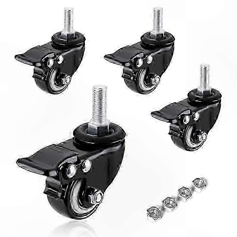Durable Swivel Casters with Brakes, 4-Pack Threaded Stem Wheels for Furniture and Carts (5/16in)