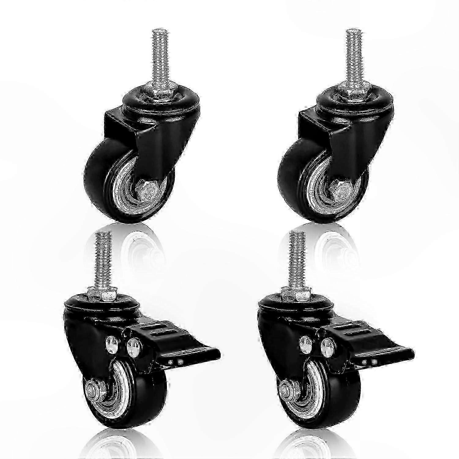 Reliable and Lightweight Casters: Furniture casters are made of premium material, making them strong and durable. The heavy-duty casters rotate 360 degrees and provide smooth, quiet, and stable movement. Each caster has a load capacity of 60 kg. Easy installation: These casters are simple to install and use, saving time and effort. No floor marks: Constructed with polyurethane (PU), the casters combine the elasticity of rubber with the strength of metal. Suitable for all floor types including wood, tile, carpet, and outdoor surfaces. Enjoy smooth, quiet gliding: Rubber furniture casters feature internal bearings for quick rolling. The smooth surface resists hair, crumbs, and dirt. Package includes 2 casters without brakes and 2 casters with M8 brakes. Versatile use: Ideal for both indoor and outdoor applications. Suitable for use on lawns, wooden floors, tiles, and carpets. Casters operate silently without damaging surfaces. Appropriate for homes, schools, garages, shops, and hospitals. Can be used on small furniture such as stools, coffee tables, plant stands, and more.