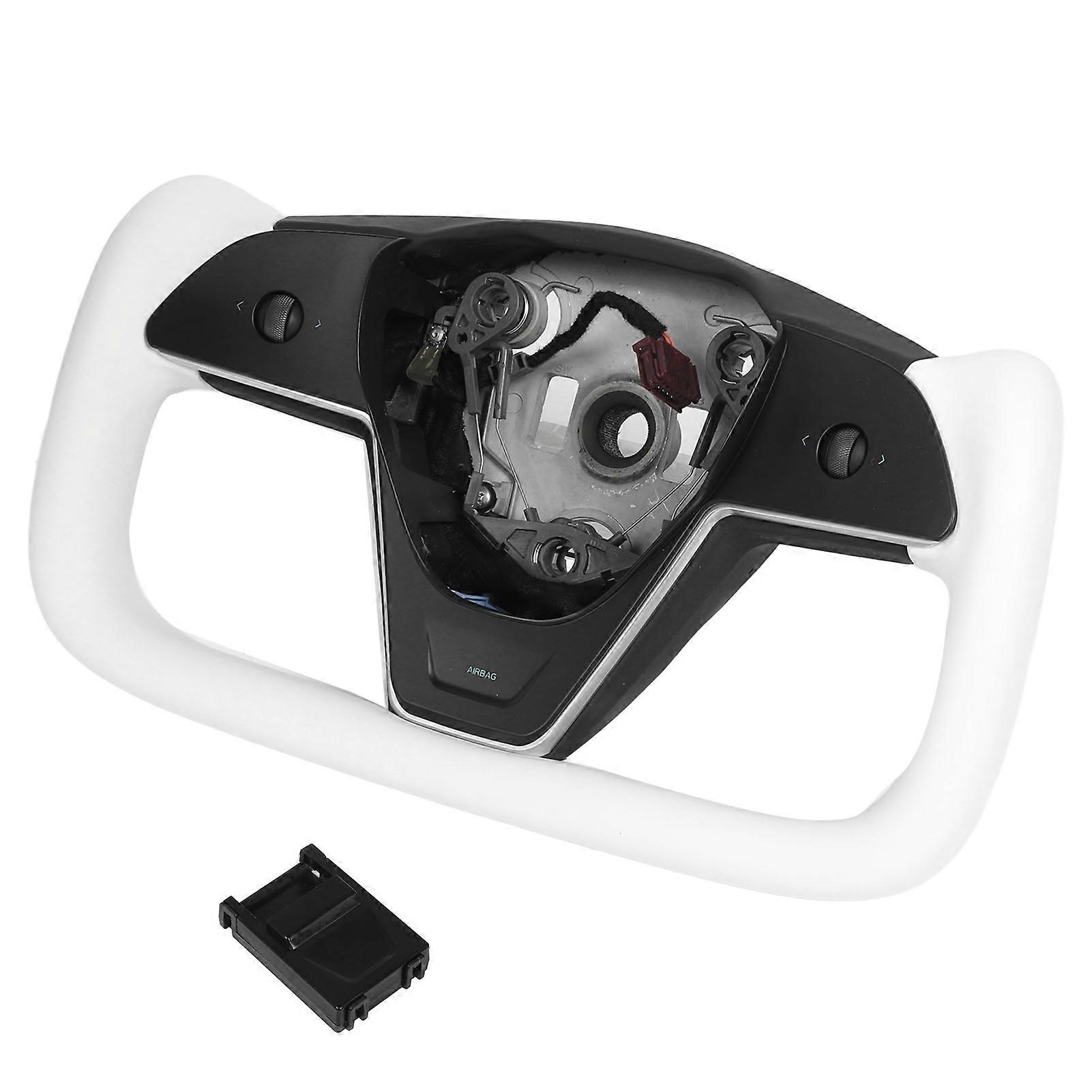 Yoke Steering Wheel with Heating Function Nappa Leather Comfortable Grip Replacement for Tesla Model 3 Y White