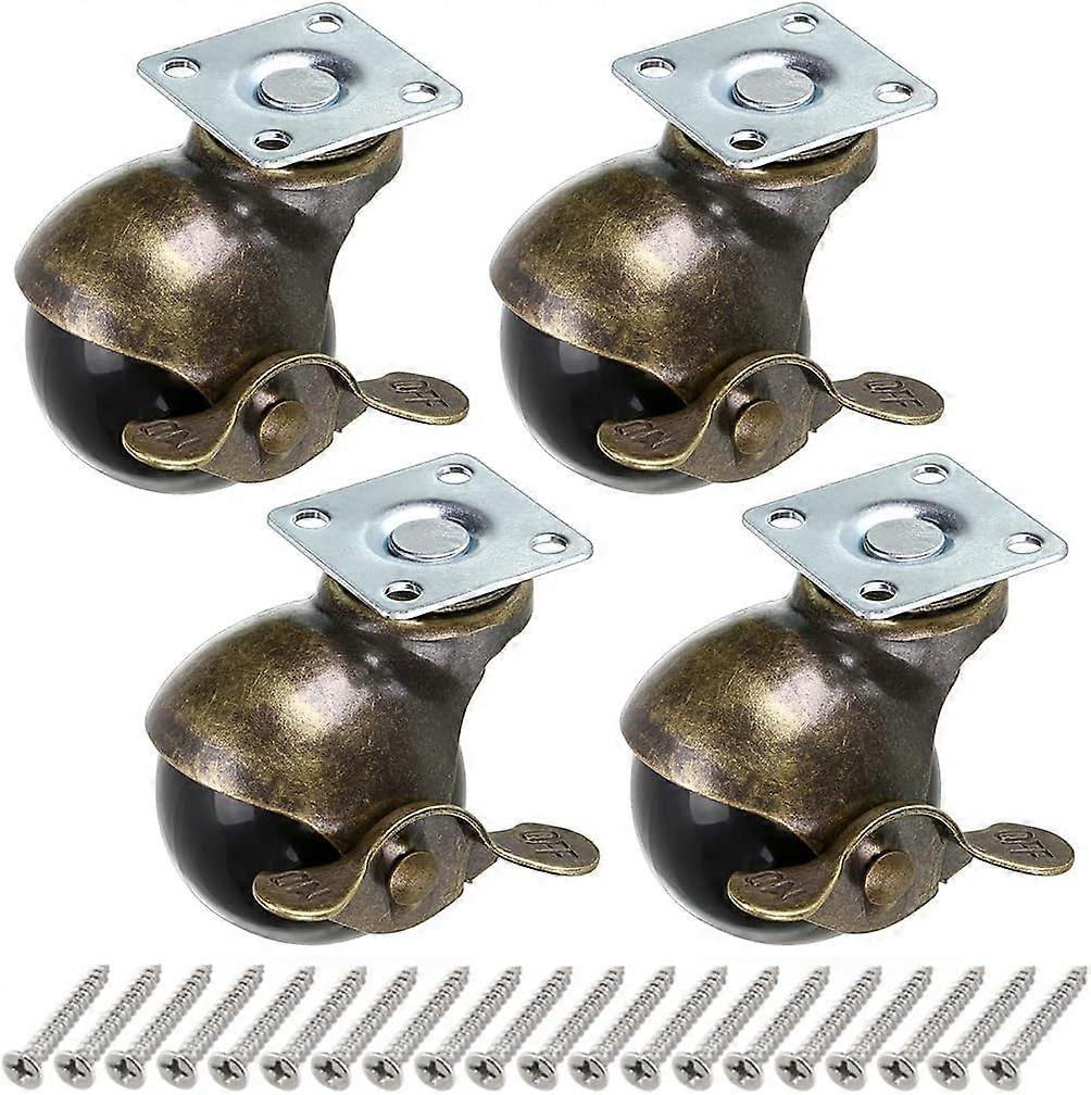 Bronze Ball Wheel, 50mm Ball Casters, Rounded Ball Casters with Brake, Replacement for Furniture, Sofas, Chairs, Cabinets, 4 Pcs