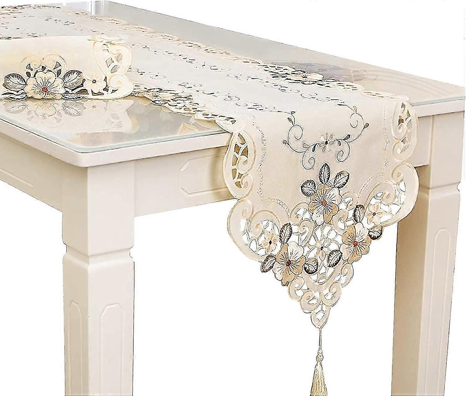 Table Runner, (40x196cm/15.7x77.2) Table Decoration With Vintage Floral Embroidery