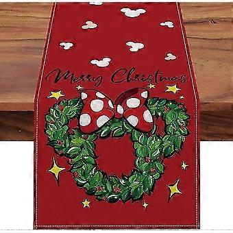 Merry Christmas Mouse Wreath Table Runner, Xmas Kitchen Dining Table Decor, Winter Holiday Farmhouse Home Decoration for Indoor Outdoor Party