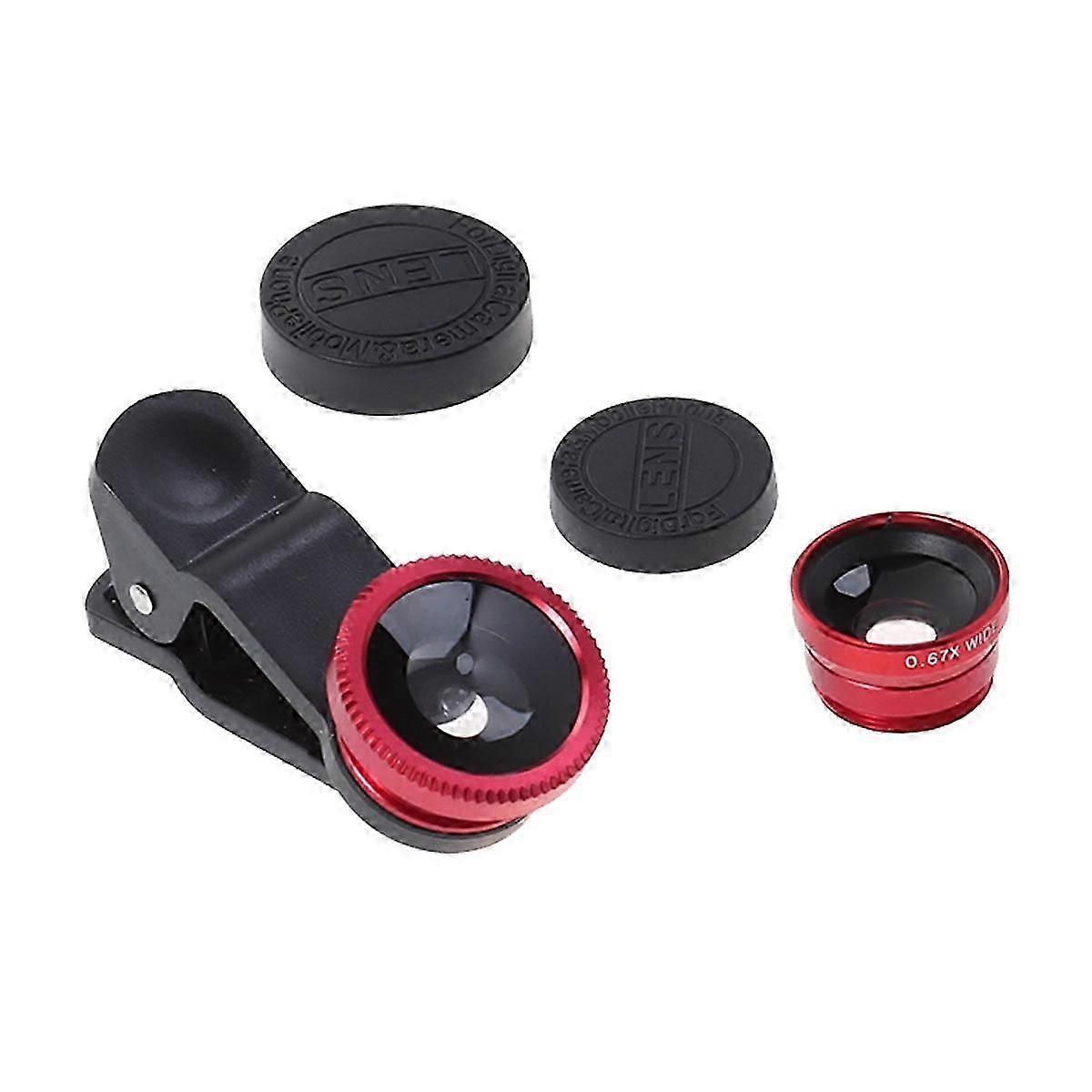 Universal Portable Cell Phone Camera Lens Super Wide Angle Lens Macro Lens and Fisheye Lens Clip on 3 in 1 Mobile Phone Lens for iPhone 6S/7/8/X (Red)
