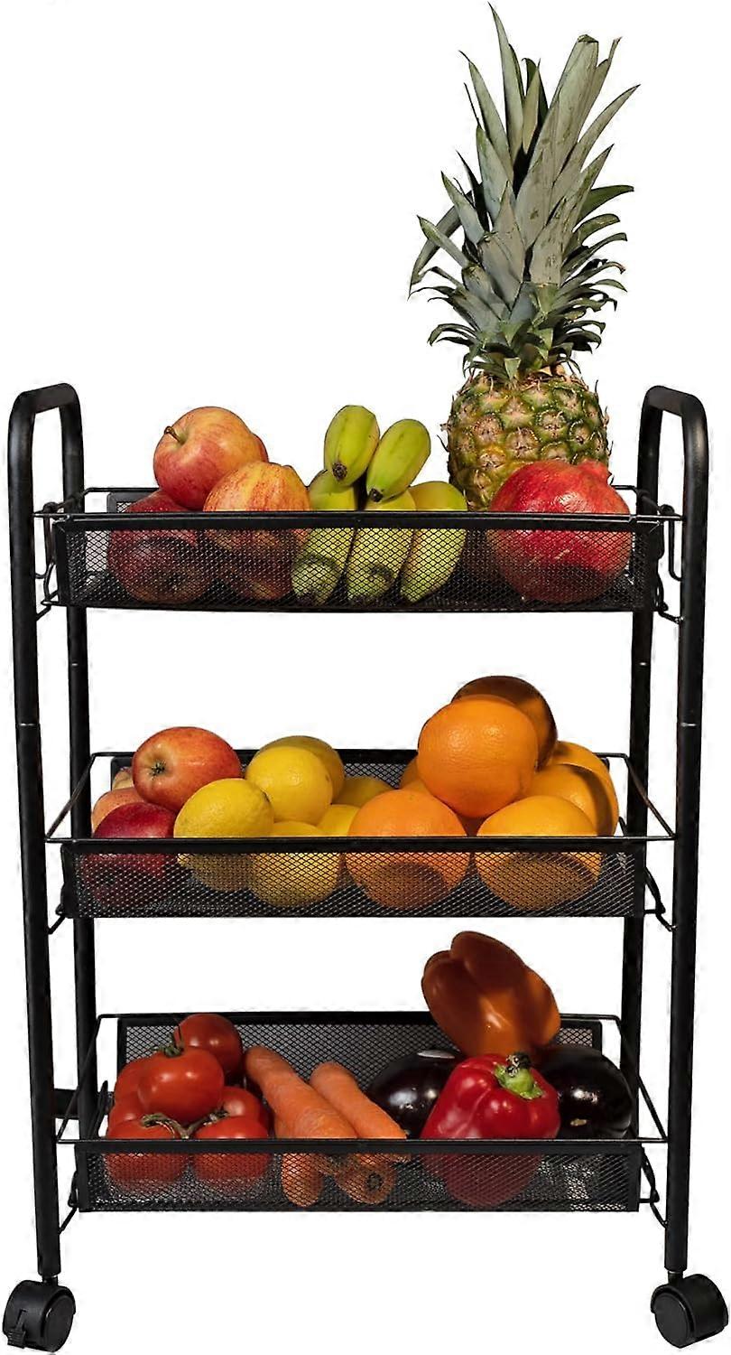 Rolling Cart, 3-Tier Metal Storage Cart, Kitchen Storage Trolley with 2 Brakes, Utility Cart with Handles, Easy Assembly, for Bathroom, Kitchen, Offic
