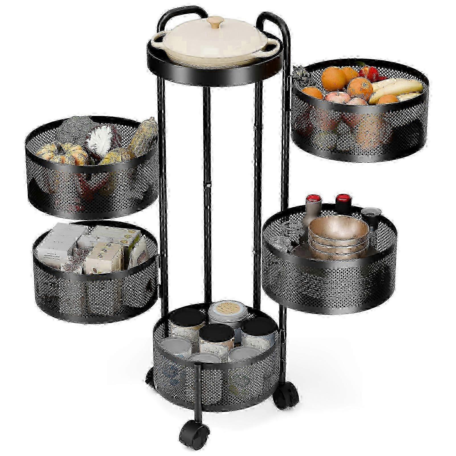 5-Tier Rotating Kitchen Trolley with Wheels, Round Fruit Vegetable Basket Storage Rack