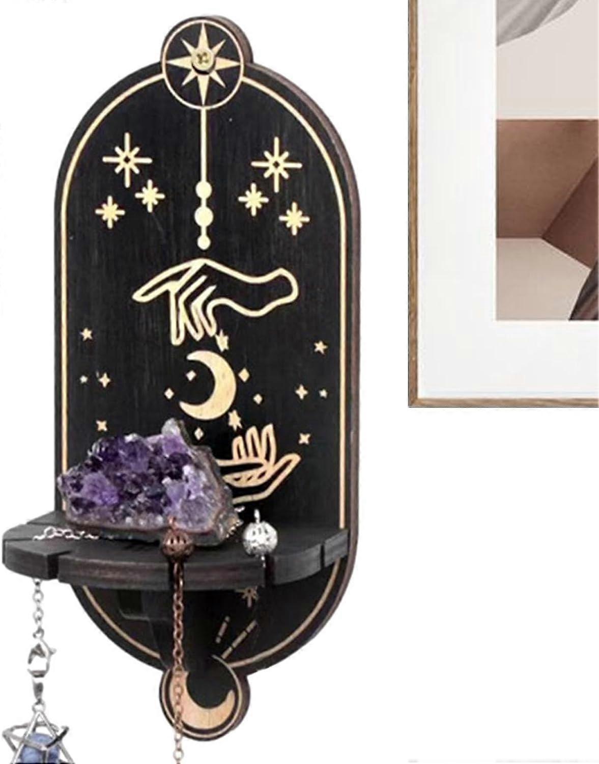 Crystal Shelf Display | Bohemian Style Wall Art,Rustic Crystal Holder Stand, Meditation Spiritual Gift for Necklace, Jewelry