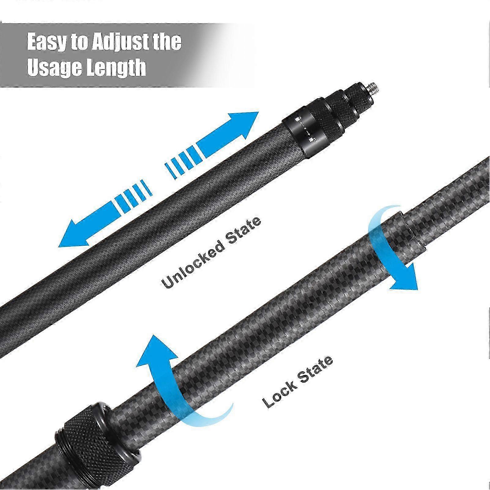 Portable Selfie Stick Carbon Fiber Stand Camera Bracket 1/4 Inch Screw Mount 36cm-150cm/14.2in-59in Adjustable Length Compatible with Insta360 X2/ X3