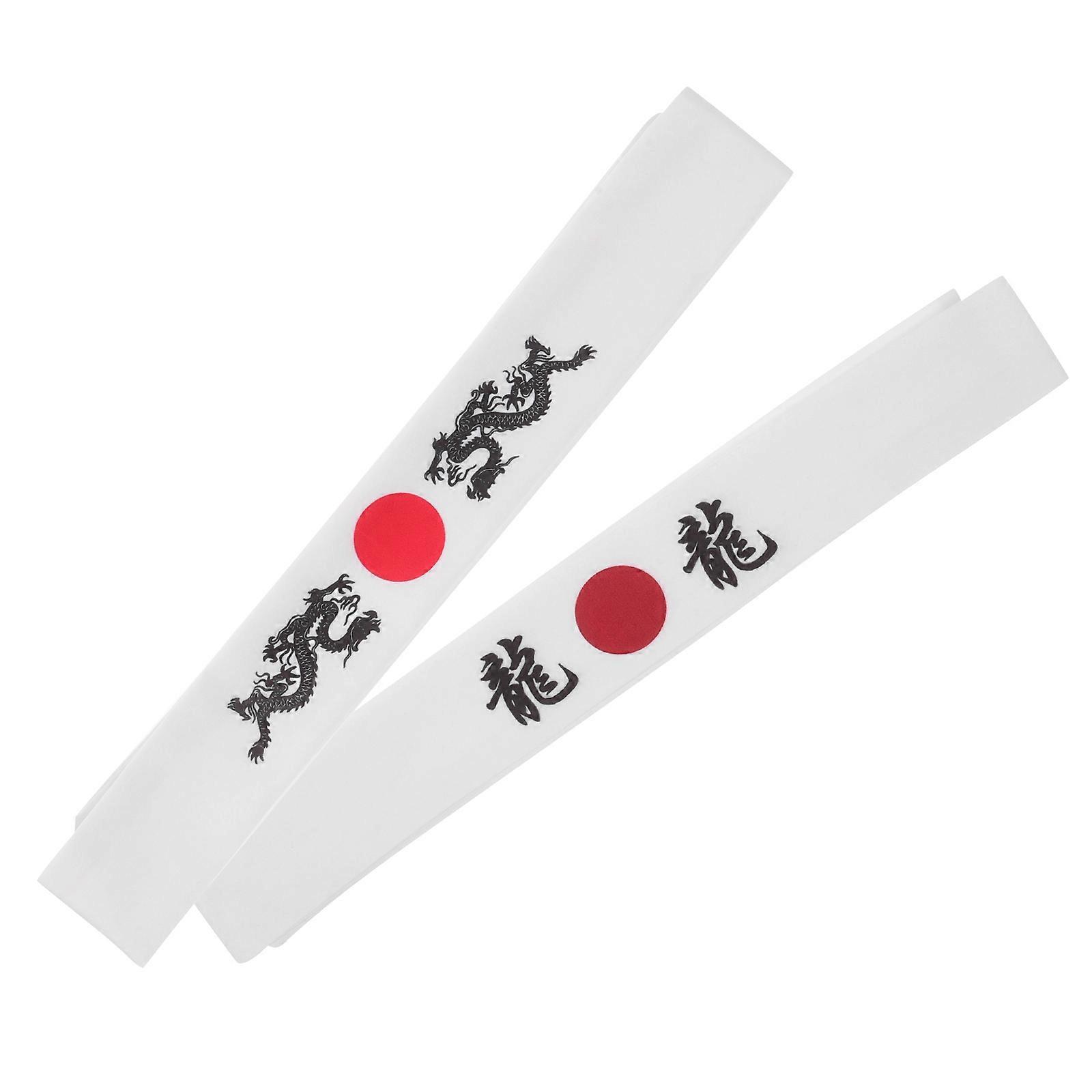 Japanese Headband Samurai Headband for Adornment 2Pcs White Cotton Headwear