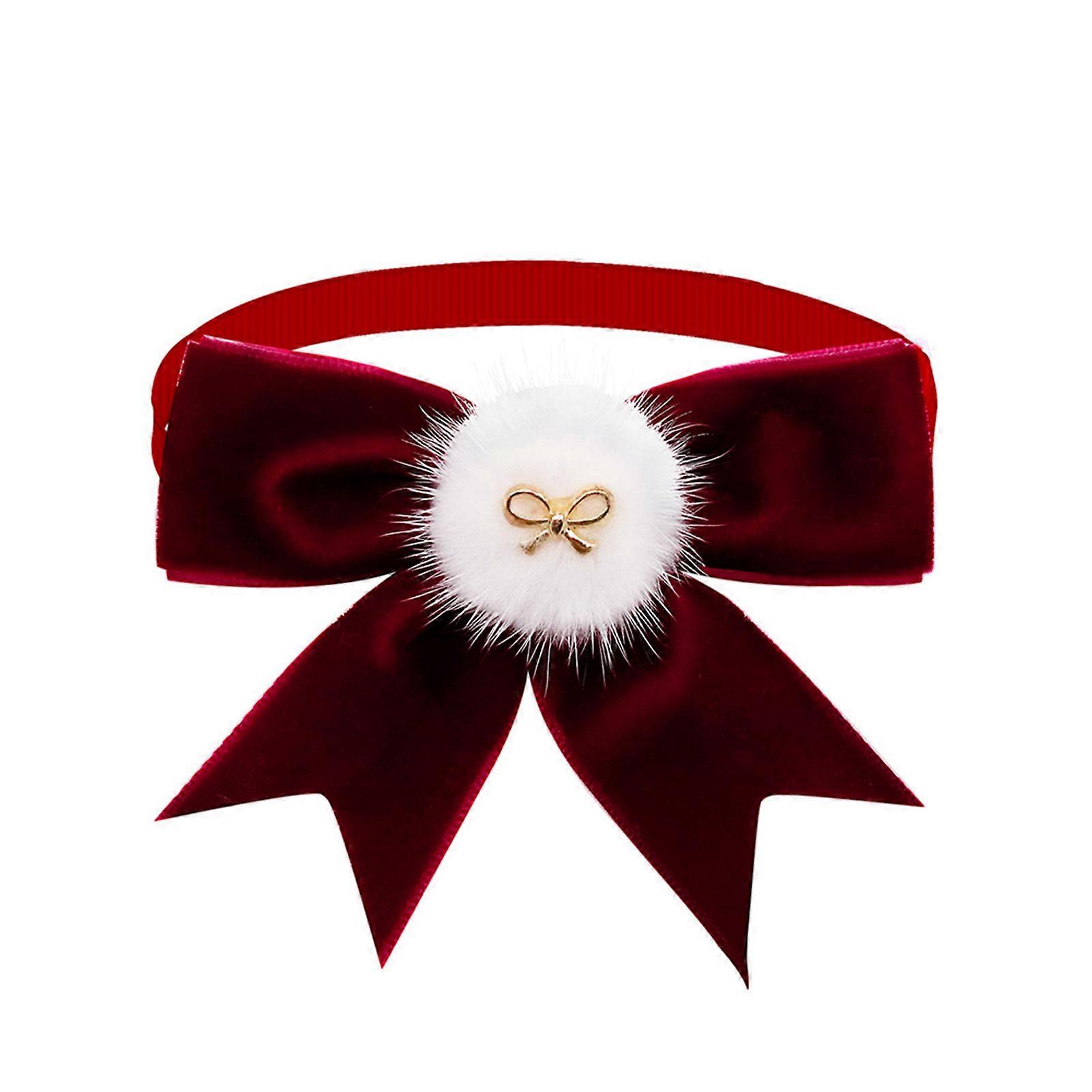 Bow-knot Pet Collar Adjustable Non-Fading Friendly to Skin Vibrant Color Wear Resistant Dress Up Polyester New Year Christmas Bow-knot Pet Collar Phot
