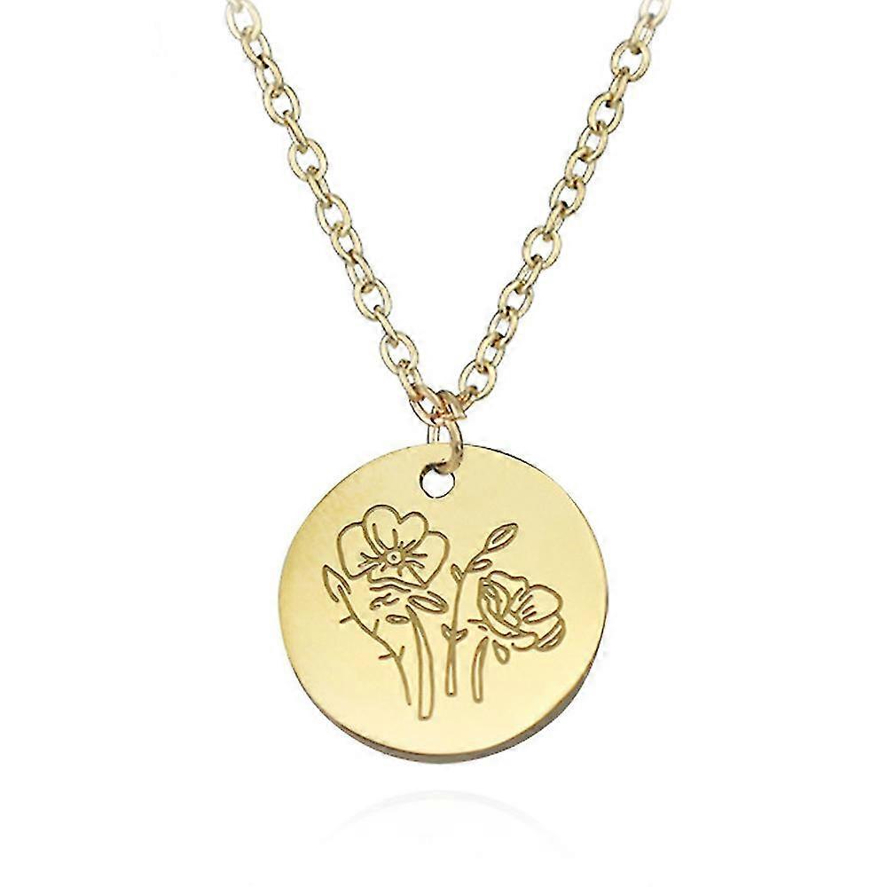 Round Coin Necklace, Titanium Steel Carved Flowers, Small Pendant Gifts