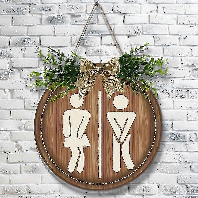 Restroom Signs for Business Funny Bathroom Sign Boy Girl in Use Sign for Bathroom Door for Rustic Farmhouse Decor Women Gender Home, 9 x 9 Inch