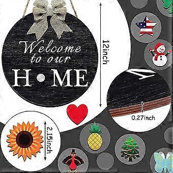 Interchangeable Seasonal Welcome Sign Front Door Decor Rustic Wood Welcome to Our Home Sign Wall Han