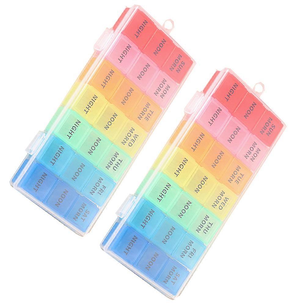 Small Weekly Pill Case Travel 2 Pcs Detachable Medicine Chest 7 Days 21 Compartments English Printed Storage