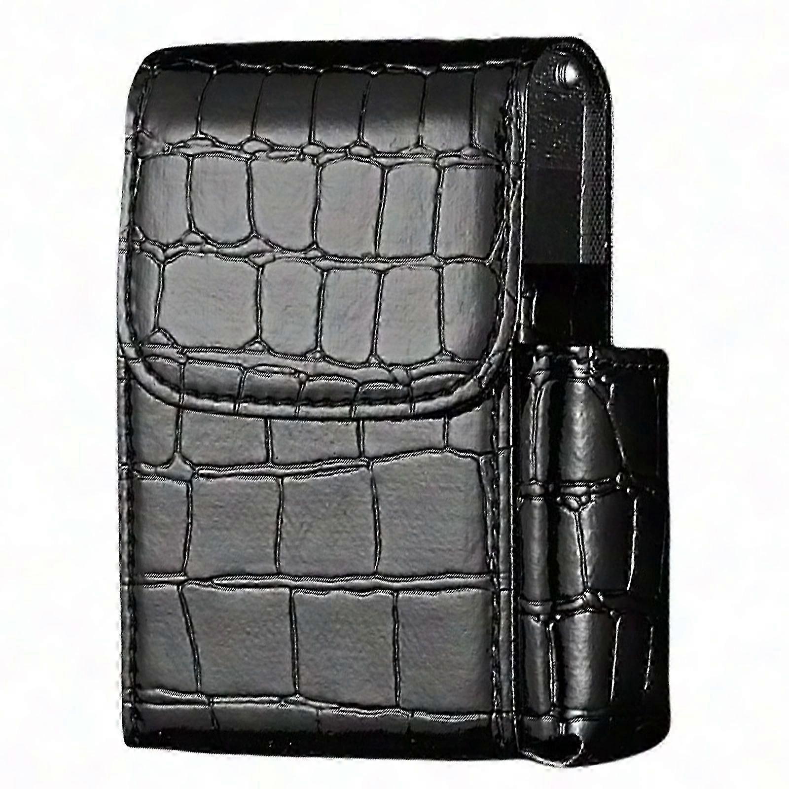 Slim PU Leather Cigarette Case with Built-in Lighter Holder - Black Woven Design for Men & Women
