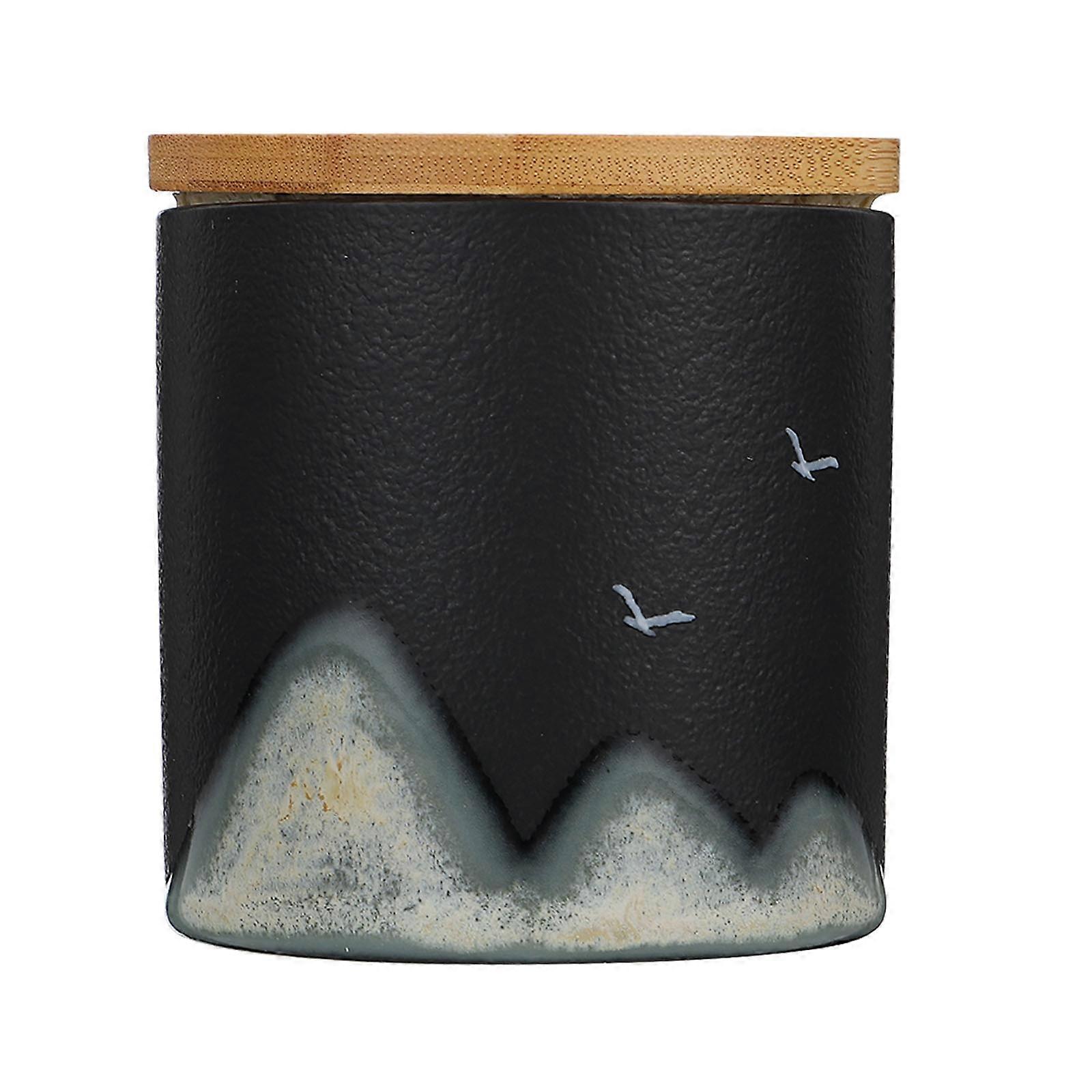 Mini Airtight Tea Canister Black Ceramic Storage Jar for Spices Multipurpose Home Organization Container with Elegant Design