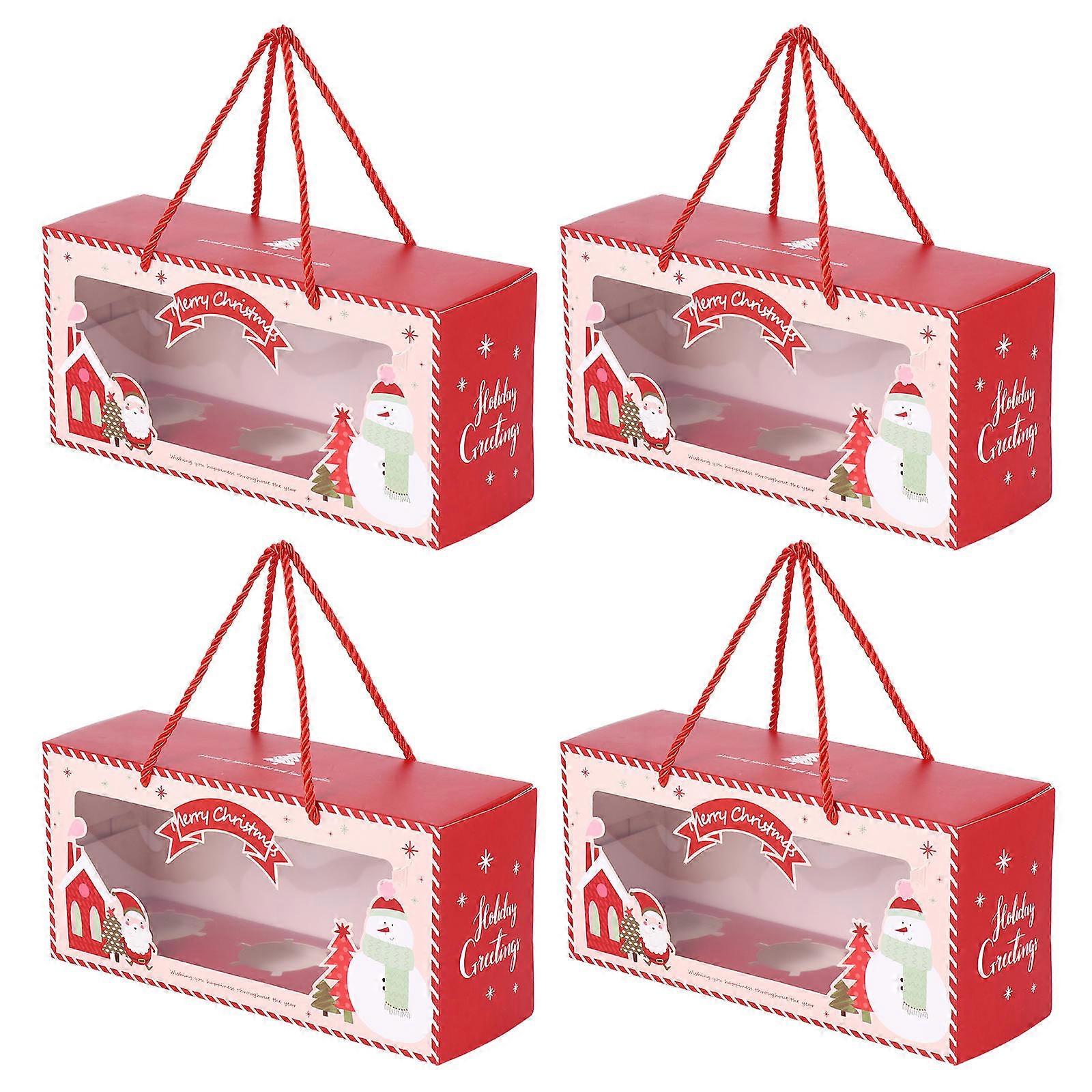 Dessert Boxes Cupcake Boxes Portable Packaging Carrying Red 27.5x13.5cm 4Pcs