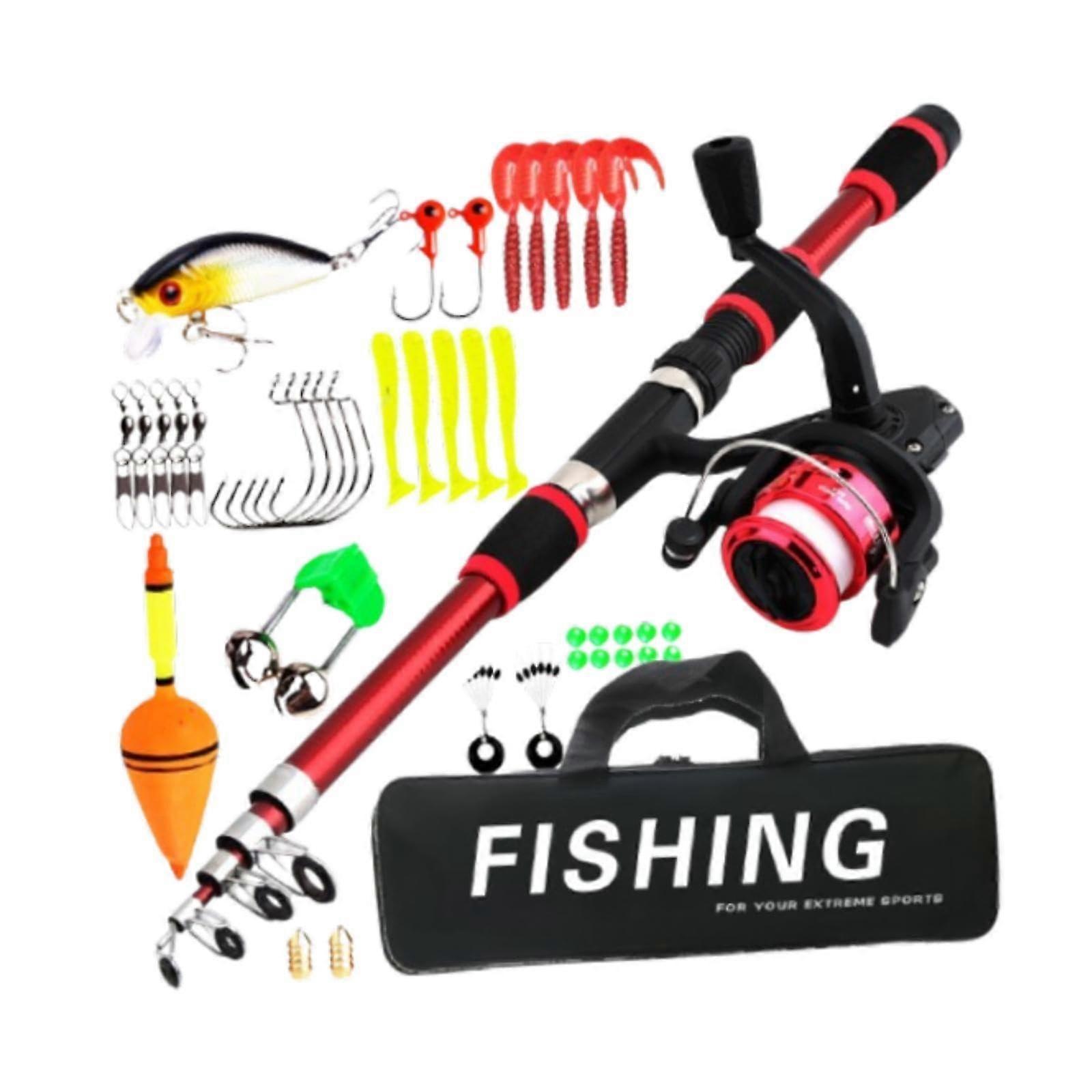 Kids Fishing Pole - Portable Telescopic Fishing Rod for Children with Fishing Line, Spincast Reel, Red Fishing Bag Set for Boys and Girls