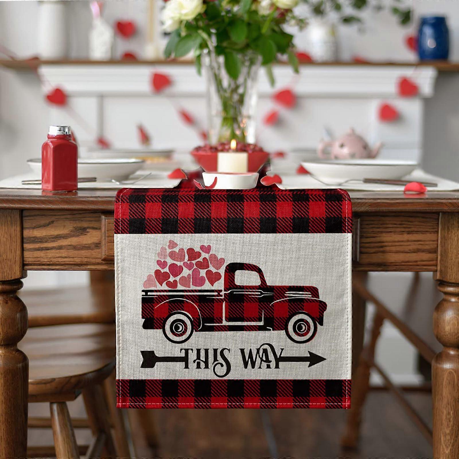 Valentine's Day Table Flag Festival Decoration Little Gnome Pattern Linen Table Cloth 33 * 120cm