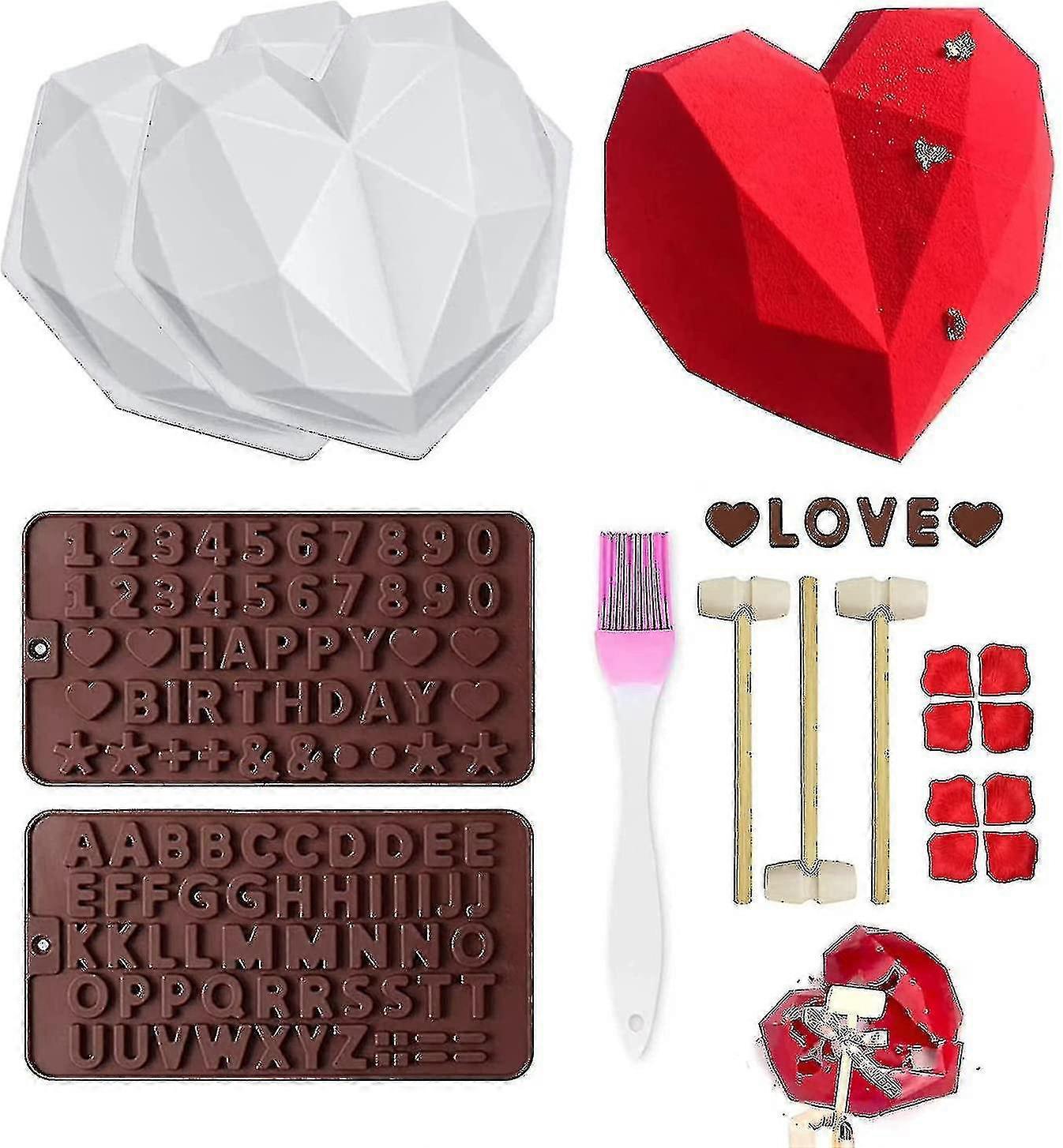 Valentine's Day Heart Silicone Molds Set, 2 Pieces Breakable Heart Chocolate Molds