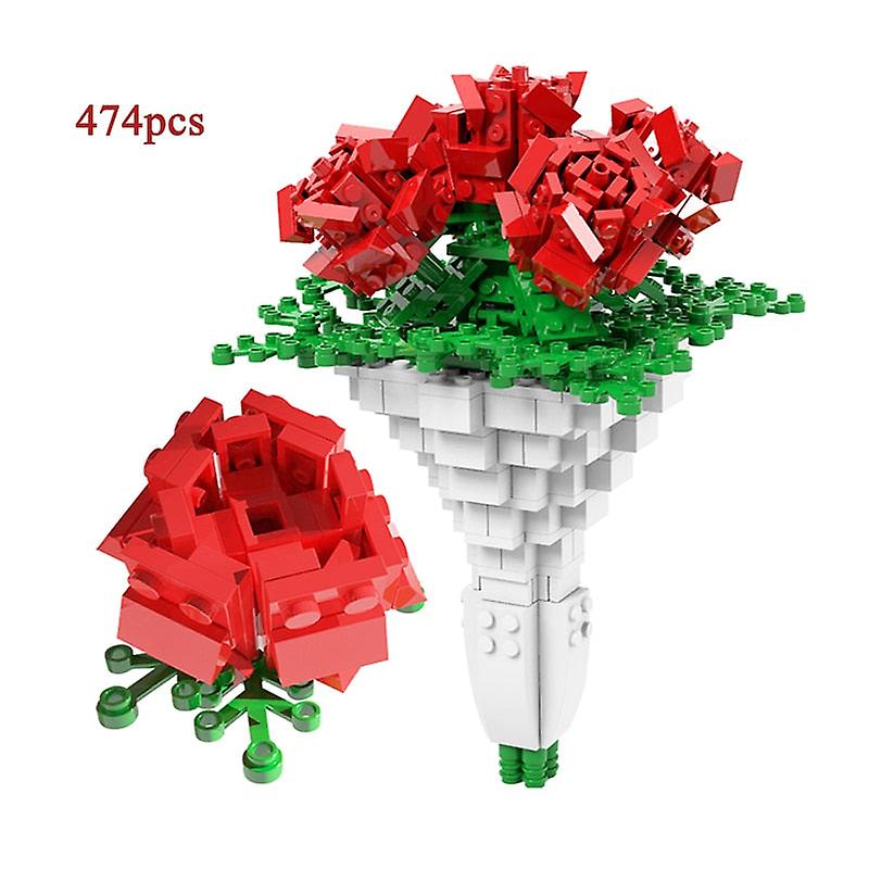Valentine's Day Bouquet Building Blocks Home Furnishing Bonsai Plant Romantic Rose Flower Model Diy Assembled Brick Girl Gift