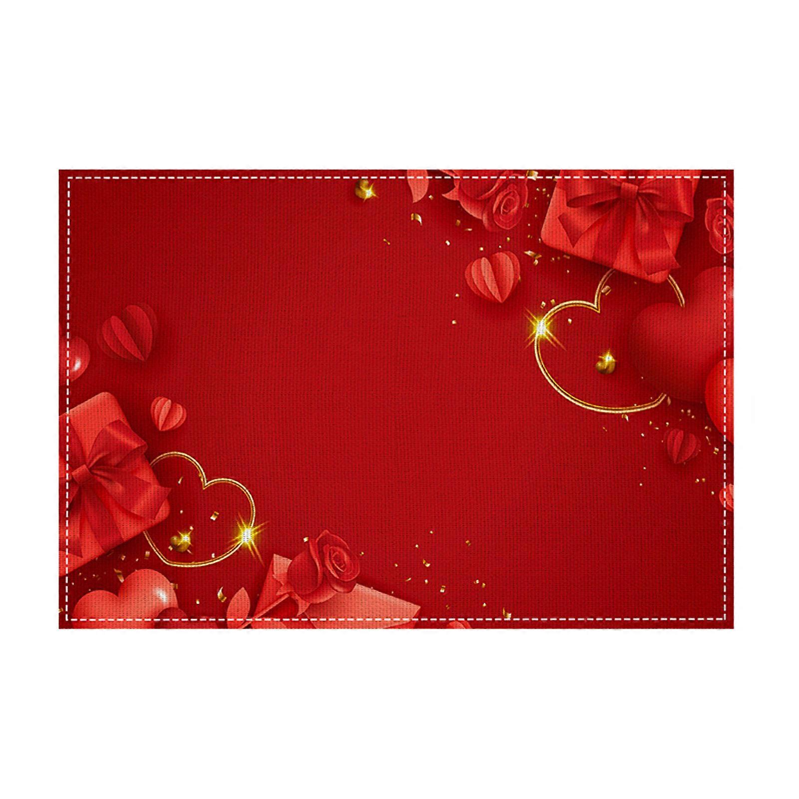 Valentine's Day Meal Mat Restaurant Table Mat Linen Printed Insulation Mat Western Mat Candlelight Dinner Decoration 18x12in Bouquet