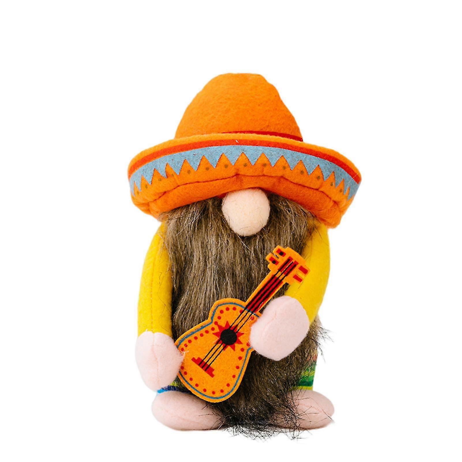 Thanksgiving Festival Gnomes Plush Doll Faceless Dwarf Doll Hold A Guitar Plush Toy Mexico Carnival Party Gnomes Ornament Thanksgiving Day Decoration