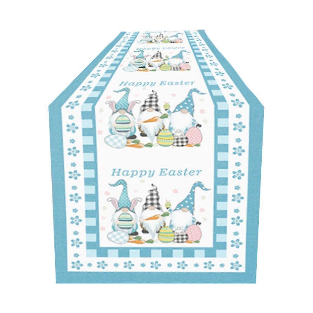 Easter Cartoon Truck Bunny Gnome Eggs Printed Table Runner Rectangle Tablecloth Cover for Holiday Party Farmhouse Kitchen Dinner Decoration Supplies