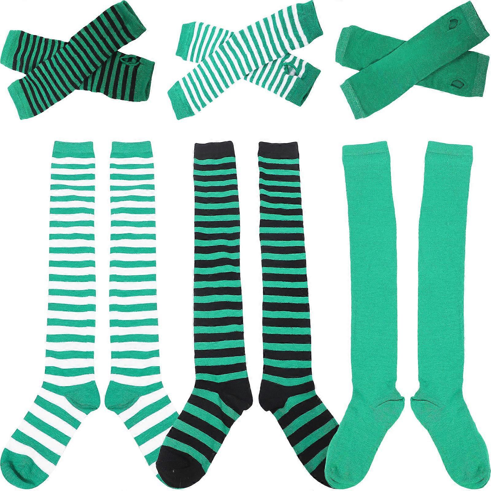 St Patrick's Day Themed Festival Party Costume Props Striped Socks Fingerless Gloves Fashion Enhancement 3 Sets