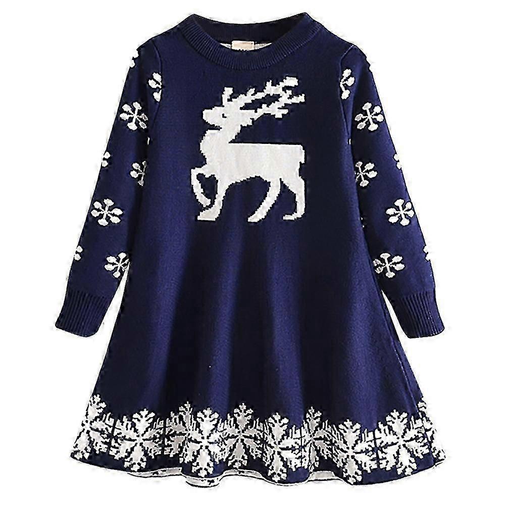 Christmas Elk Kids Girl Jumper Dress Long Sleeve Sweater Xmas Dress Costume Clothes