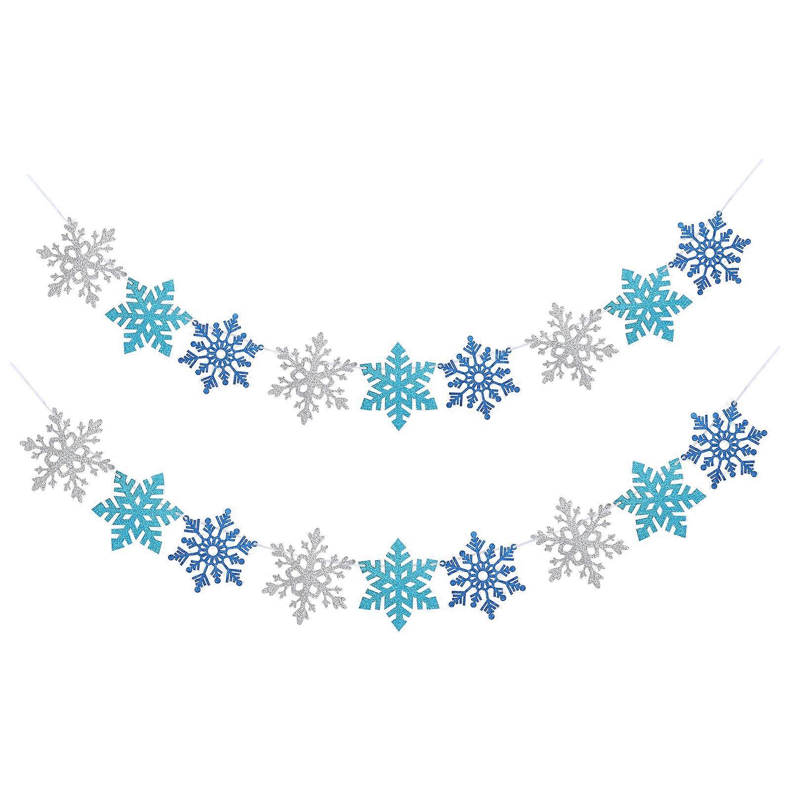 Christmas Decorative Flag with Snowflakes Assorted Color Paper Banner for Home Party Decoration 2 Sets