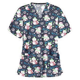 عيد الميلاد المرأة التمريض موحدة فرك قصيرة الأكمام تي شيرت عيد الميلاد بلوزة تي قمم