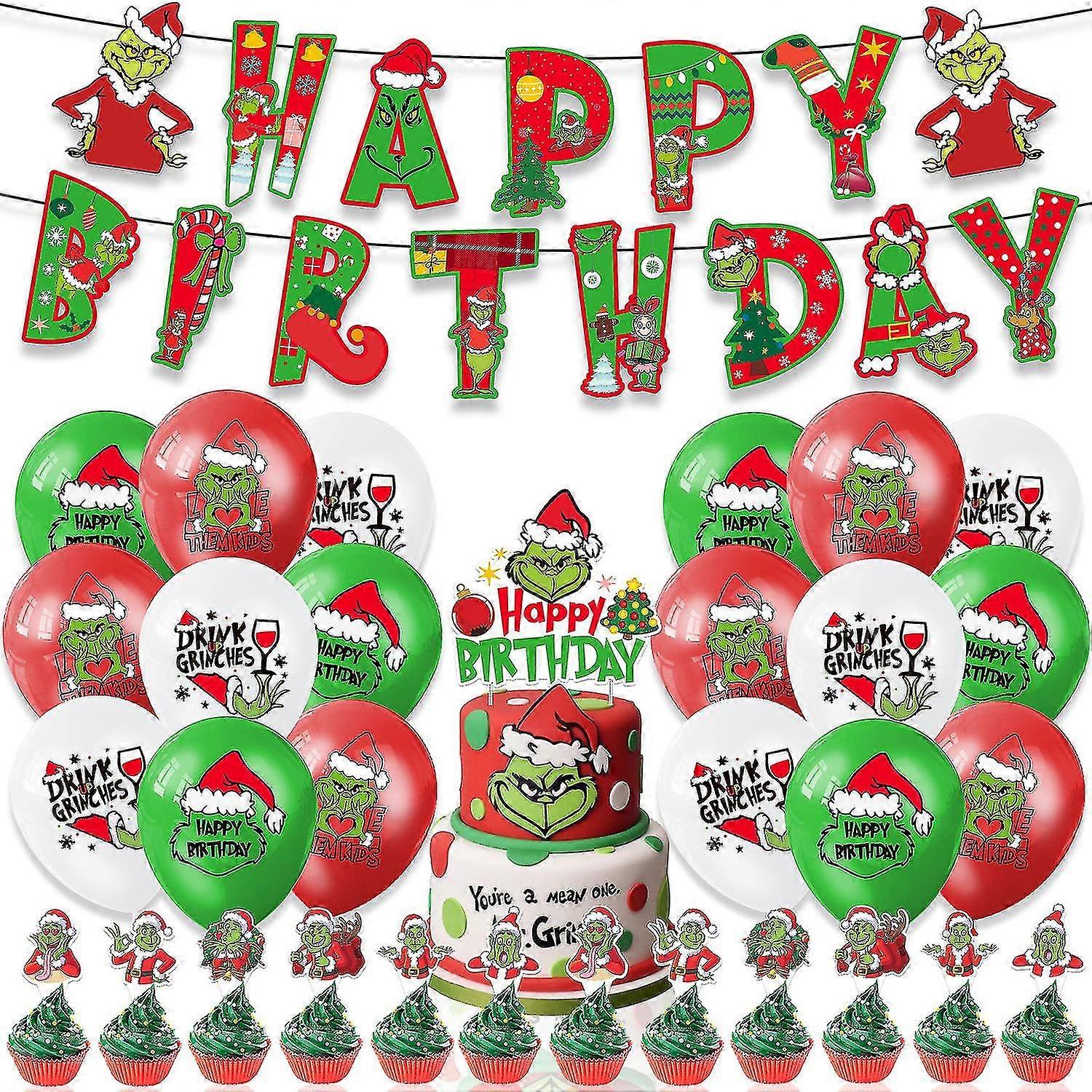 Christmas Geek Themed Birthday Party Decorations Grinch Pull Tabs Cake Inserts Balloons Spiral Charms Party