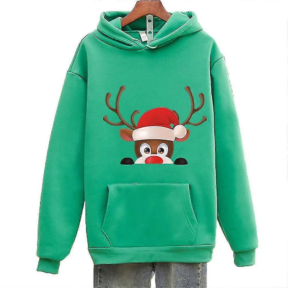 Christmas Women Men Elk Printed Couple Hoodie Long Sleeve Hooded Xmas Sweatshirt Pullover Tops-green