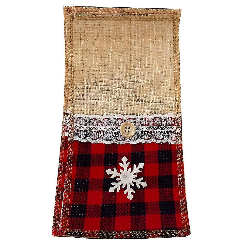 Christmas Cutlery Holder Bag Set Of 12, Red Plaid Burlap Lace Cutlery Bag For Weddings, Xmas Party