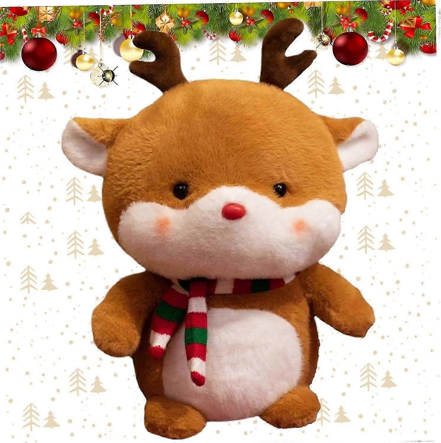 Christmas Plush 9 Inch Cute & Cuddly Christmas Stuffed Animals Skin-Friendly Soft Breathable Christmas Decorations(Reindeer)