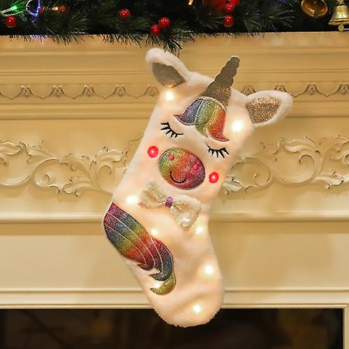 Christmas Stocking Gift Bag Unicorn Pattern Gift Bag Large Candy Bag Christmas Pendant, Specification: With Light