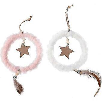 Christmas Hanging Fluffy Star Christmas Tree Hanging Tree Decoration White Pink Party Accessories (white Pink) (2pcs)